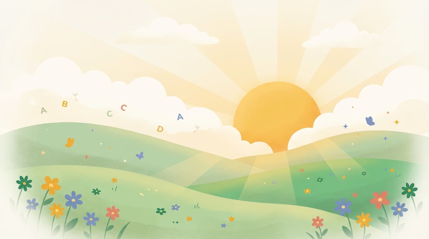 A winding path of topic islands that children explore as they progress. Completed nodes glow and connect, making progress feel like a journey.